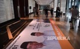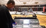 REPUBLIKA.CO.ID, JAKARTA -- Pekerja melakukan berbagai persiapan untuk debat pertama capres-cawapres Pilpres 2019 di Hotel Bidakara, Jakarta Selatan, Rabu (16/1/2019).