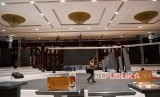 Pekerja menyiapkan panggung untuk debat pertama capres-cawapres Pilpres 2019 di Hotel Bidakara, Jakarta Selatan, Rabu (16/1/2019). (FOTO : Antara/Sigid Kurniawan)