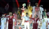 Penampil membawakan pagelaran bangun pemudi pemuda saat peringatan HUT Presiden kelima RI Megawati Sukarnoputri di Jakarta, Rabu (23/1). (FOTO : Republika/Prayogi)