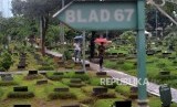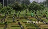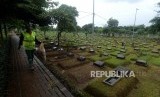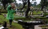 REPUBLIKA.CO.ID, JAKARTA -- Petugas saat membersihkan sampah di Tempat Pemakaman Umum (TPU) Karet Bivak, Jakarta, Jumat (25/1).