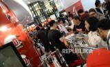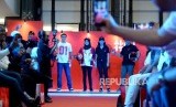Peluncuran Cenderamata Resmi Paslon 01. Pengunjung memilih cenderamata resmi Paslon Capres nomer 01 Jokowi-Maruf Amin saat peluncuran di Jakarta, Jumat (25/1/2019). (FOTO : Republika/ Wihdan)