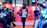 Peluncuran Cenderamata Resmi Paslon 01. Model memamerkan cenderamata resmi Paslon Capres nomer 01 Jokowi-Maruf Amin di Jakarta, Jumat (25/1/2019). (FOTO : Republika/ Wihdan)