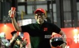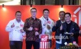 Peluncuran Cenderamata Resmi Paslon 01. Ketua TKN Jokowi-Maruf Amin, Erick Thohir (kanan) menerima potongan tumpeng dari Ketua Tim Pemenangan Jokowi_Amin DKI Jakarta Edi Prasetyo (kedua kanan) saat peluncuran cenderamata resmi #01 di Jakarta, Jumat (25/1/2019). (FOTO : Republika/ Wihdan)