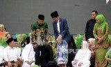 Presiden Joko Widodo didampingi Ibu Negara Iriana Joko Widodo, Ketua PBNU Said Aqil Siroj dan Ketua Muslimat NU Khofifah Indar Parawansa mengahdiri Harlah Ke-73 Muslimat NU di Stadion Utama Gelora Bung Karno, Senayan, Jakarta, Ahad (27/1). (FOTO : Republika/Prayogi)