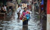 REPUBLIKA.CO.ID, PEKALONGAN -- Seorang ibu menggendong anaknya melewati genangan banjir di Pekalongan, Jawa Tengah, Senin (28/1/2019).
