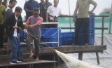 Selain meninjau panen raya udang, Presiden juga meninjau program Membina Ekonomi Keluarga Sejahtera (Mekar).