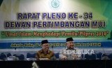 Umat Islam Menghadapi Pemilu 2019. Wakil Ketua Dewan Pertimbangan MUI Didin Hafidhudin (kanan) memimpin Rapat Pelno ke-34 Dewan Pertimbangan MUI di Jakarta, Rabu (30/1/2019). (FOTO : Republika/ Wihdan)