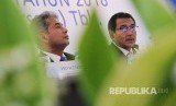 Dirut BRI Suprajarto (kanan) dan Wadirut Bank BRI Sunarso (kiri) menyampaikan Laporan Keuangan Triwulan IV Than 2018 di Jakarta, Rabu (30/1). BRI membukukan laba bersih Rp 32,4 triliun di 2018. Laba ini naik 11,6% dibandingkan 2017. (FOTO : Tahta Aidilla/Antara)