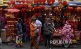 Pengunjung mengamati pernak-pernik Imlek yang dijual di Glodok, Jakarta, Selasa (29/1). Pedagang menjual aneka hiasan Imlek dengan harga Rp10.000 sampai Rp500.000 tergantung jenis dan ukuran. (FOTO : Dede Risky Permana/Antara)