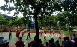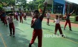 REPUBLIKA.CO.ID, JAKARTA -- Sejumlah pelajar SDN Lenteng Agung 03 saat melaksanakan mata pelajaran olahraga di RPTRA Lenteng Agung, Jakarta, Kamis (31/1).