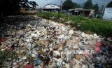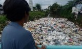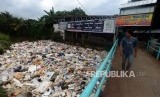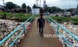 REPUBLIKA.CO.ID, BOGOR -- Warga berjalan di atas jembatan sungai yang aliran airnya dipenuhi tumpukan sampah di anak Sungai Ciliwung Kali Baru, Bojong Gede, Bogor, Jawa Barat, Kamis (31/1).