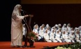 REPUBLIKA.CO.ID, JAKARTA -- Sejumlah anggota Badan Kontak Majelis Taklim saat menghadiri acara milad ke-38 tahun di Gedung Sasana Kriya TMII, Jakarta, Selasa (5/2).