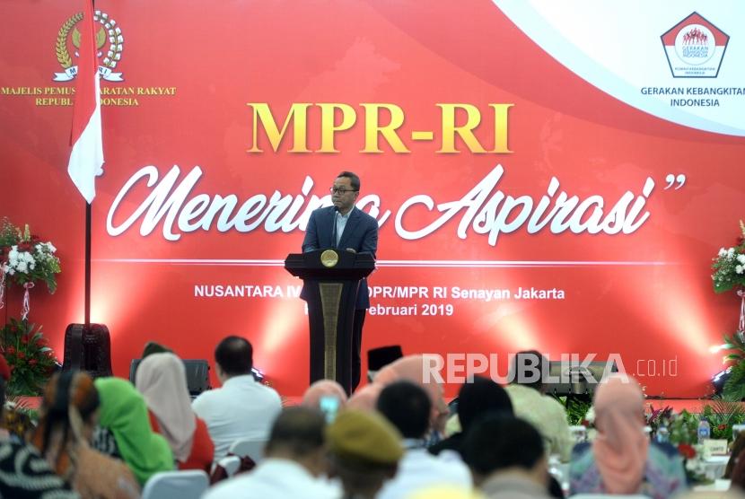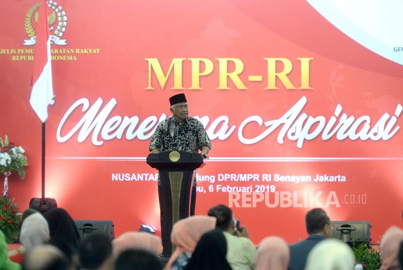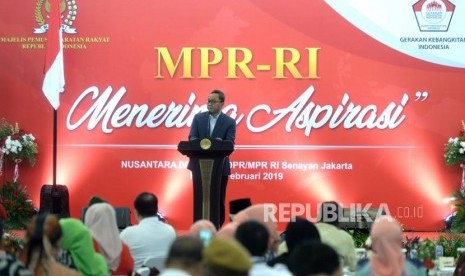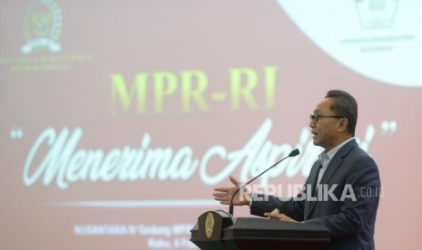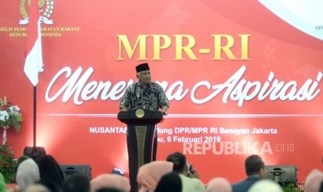 MPR Mendengar Aspirasi. Ketua MPR RI Zulkifli Hasan menyampaikan paparan saat MPR Mendengar Aspirasi di Komplek Parlemen Senayan, Jakarta, Rabu (6/2/2019). (FOTO : Republika/ Wihdan)
