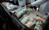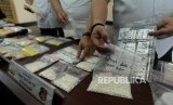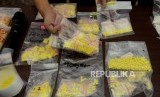 Polisi merapikan barang bukti obat-obatan saat rilis kasus tindak pidana bidang kesehatan dan perlindungan konsumen terhadap pelaku usaha yang mengedarkan obat-obatan tanpa ijin edar di Polda Metro Jaya, Jakarta, Kamis (7/2). (FOTO : Republika/Putra M. Akbar)