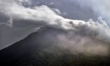 REPUBLIKA.CO.ID, SIAU -- Puncak gunung api Karangetang terpantau dari laut bagian barat Pulau Siau, Kabupaten Kepulauan Sitaro, Sulawesi Utara, Kamis (7/2/2019).