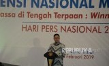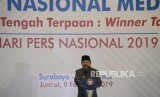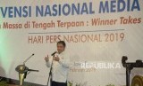 Ketua Dewan Pers Yosep Adi Prasetyo memberikan sambutan pada pembukaan konvensi nasional media massa dalam rangkaian Hari Pers Nasional (HPN) 2019 di Surabaya,Jawa Timur, Jumat (8/2). (FOTO : Republika/Prayogi)