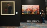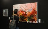 REPUBLIKA.CO.ID, JAKARTA -- Pengunjung melihat lukisan saat Pameran Satu Arah untuk Satu Indonesia Maju di Jakarta, Ahad (10/2/2019).