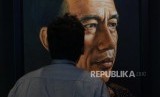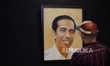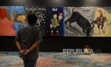 Dari Seniman Untuk 01. Pengunjung melihat lukisan saat Pameran Satu Arah untuk Satu Indonesia Maju di Jakarta, Ahad (10/2/2019). (FOTO : Republika/ Wihdan)