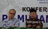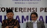 Sekertaris PP Muhammadiyah Abdul Mu'ti (kanan) bersama Ketua PP Muhammadiyah Bahtiar Effendy (kiri) memberikan keterangan terkait pelaksanaan Tanwir Muhammadiyah di Gedung Dakwah Muhammadiyah, Jakarta, Senin (11/2). (FOTO : Republika/Prayogi)