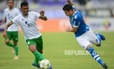 Winger Persib Bandung Esteban Vizcarra ditempel ketat bek Persiwa Wamena Ridwan Abdullah Ramdhani pada pertandingan leg kedua Piala Indonesia babak 32 besar antara Persib Bandung melawan Persiwa Wamena di Stadion si Jalak Harupat, Soreang, Senin (11/2). (FOTO : Yogi Ardhi/Republika)