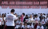 REPUBLIKA.CO.ID, JAKARTA -- Kementerian Dalam Negeri (Kemendagri) menggelar apel bersama Aparatur Sipil Negara (ASN) lingkup Kemendagri pada Jumat, (15/2) sore di Kawasan Silang Monas Selatan, Gambir, Jakarta Pusat. Tujuannya mempersiapkan Pemilu Serentak 2019.