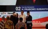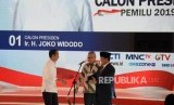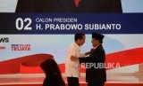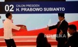 Capres No 01 Joko Widodo dan Capres No 02 Prabowo Subianto usai debat kedua calon presiden pemilu 2019, Jakarta, Ahad (17/2). (FOTO : Republika/Prayogi)