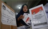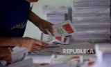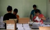 REPUBLIKA.CO.ID, JAKARTA -- Petugas sortir dan pelipat kertas suara pilpres 2019 malakukan pekerjaannya di Gudang Logistik KPU Jakarta Pusat, Jakatra, Selasa (19/2).