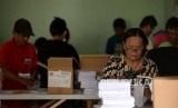Selain melipat kertas suara tersebut para pekerja juga turut menyortir kertas suara yang cacat dan yang tidak cacat.