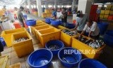 REPUBLIKA.CO.ID, JAKARTA -- Pekerja saat beraktivitas di Pasar Ikan Modern Muara Baru, Jakarta, Kamis (21/2).