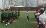 REPUBLIKA.CO.ID, PHNOM PENH -- Pelatih Timnas U-22 Indra Sjafri (tengah) memberi arahan kepada pemain dalam latihan menjelang pertandingan babak Final Sepak Bola AFF U-22 di Stadion Nasional Olimpiade, Phnom Penh, Kamboja, Senin (25/2/2019). Timnas U-22 Indonesia akan menghadapi tim Thailand pada babak final 26 Februari 2019.