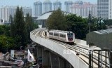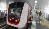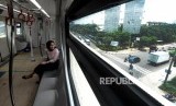 REPUBLIKA.CO.ID, Kereta ringan atau Light Rail Transit (LRT) rute Velodrome-Kelapa Gading melintas di Jakarta, Senin (25/2/2019).