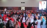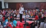 Presiden Joko Widodo memberikan sambutan saat menyerahkan bantuan sosial Program Keluarga Harapan di Cilacap, Jawa Tengah, Senin (25/2/2019). (FOTO : Republika/Edwin Dwi Putranto)