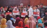 Presiden Joko Widodo menyerahkan bantuan sosial Program Keluarga Harapan di Cilacap, Jawa Tengah, Senin (25/2/2019). (FOTO : Republika/Edwin Dwi Putranto)