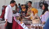 Presiden Joko Widodo meninjau stan warga sebelum menyerahkan bantuan sosial Program Keluarga Harapan di Cilacap, Jawa Tengah, Senin (25/2/2019). (FOTO : Republika/Edwin Dwi Putranto)