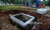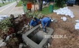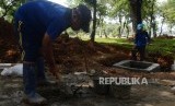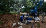 REPUBLIKA.CO.ID, JAKARTA -- Petugas Dinas Sumber Daya Air saat menyelesaikan pembangunan sumur resapan di kawasan Monas, Jakarta, Selasa (26/2).