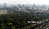 Ruang Terbuka Hijau. Suasana ruang terbuka hijau (RTH) dengan latar belakang gedung bertingkat di Jakarta, Rabu (27/2). (FOTO : Republika/Putra M. Akbar)