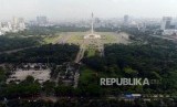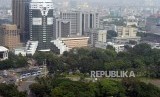 Ruang Terbuka Hijau. Suasana ruang terbuka hijau (RTH) dengan latar belakang gedung bertingkat di Monas, Jakarta, Rabu (27/2). (FOTO : Republika/Putra M. Akbar)