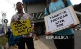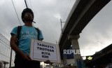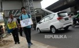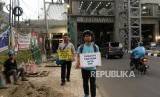 REPUBLIKA.CO.ID, JAKARTA -- Aktivis Koalisi Pejalan Kaki melakukan aksi simpatik di Kawasan Farmawati, Jakarta, Jumat (1/3).