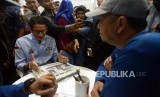 Calon Wakil Presiden Nomor Urut 02 Sandiaga Uno saat menyumbang buku pada acara Islamic Book Fair 2019 di Jakarta Convention Center, Jakarta, Ahad (3/3). (FOTO : Republika/Putra M. Akbar)