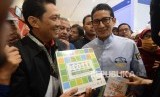 Calon Wakil Presiden Nomor Urut 02 Sandiaga Uno saat mengunjungi Islamic Book Fair 2019 di Jakarta Convention Center, Jakarta, Ahad (3/3). (FOTO : Republika/Putra M. Akbar)