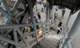 REPUBLIKA.CO.ID, JAKARTA -- Kendaraan melintas di dekat Jembatan Penyeberangan Orang (JPO) yang rusak di Pasar Minggu, Jakarta, Selasa (5/3).
