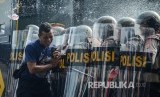 REPUBLIKA.CO.ID, CIMAHI -- Petugas kepolisian melaksanakan simulasi pengamanan Pemilu di Lapangan Brigif, Cimahi, Jawa Barat, Jumat (8/3/2019).
