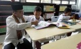 Gubernur DKI Jakarta Anies Baswedan meninjau siswa belajar saat peresmian gedung sekolah di SDN 01 Pondok Labu, Jakarta, Jumat (8/3). (FOTO : Republika/Putra M. Akbar)