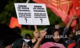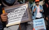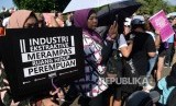 Hari Perempuan Internasional. Sejumlah aktivis perempuan menggelar aksi saat peringatan Hari Perempuan Internasional di kawasan Monuman Nasional (Monas), Jakarta, Jumat (8/3). (FOTO : Republika/Prayogi)