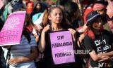 REPUBLIKA.CO.ID, JAKARTA -- Sejumlah aktivis perempuan menggelar aksi saat peringatan Hari Perempuan Internasional di kawasan Monuman Nasional (Monas), Jakarta, Jumat (8/3).