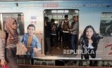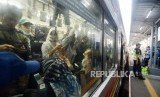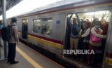 Sejumlah penumpang menaiki KRL Commuter Line di Stasiun Cilebut, Bogor, Jawa Barat, Senin (11/3). (FOTO : Republika/Putra M. Akbar)