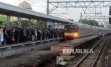 REPUBLIKA.CO.ID, JAKARTA -- Sejumlah penumpang menunggu keberangkatan KRL Commuter Line di Stasiun Cilebut, Bogor, Jawa Barat, Senin (11/3).