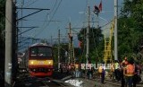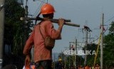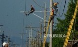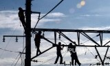 REPUBLIKA.CO.ID, BOGOR -- Sejumlah petugas memperbaiki Listrik Aliran Atas (LAA) di kawasan Kebon Pedes, Tanah Sareal, Bogor, Jawa Barat, Senin (11/3).