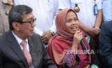 Pemulangan Siti Aisyah. Menkumham Yasonna Laolly (kiri) bersama Siti Aisyah tiba di Bandara Halim Perdanakusuma, Jakarta, Senin (11/3/2019). (FOTO : Republika/ Wihdan)