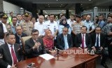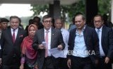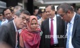 Pemulangan Siti Aisyah. Menkumham Yasonna Laolly (kedua kiri) bersama Siti Aisyah (tengah) tiba di Bandara Halim Perdanakusuma, Jakarta, Senin (11/3/2019). (FOTO : Republika/ Wihdan)